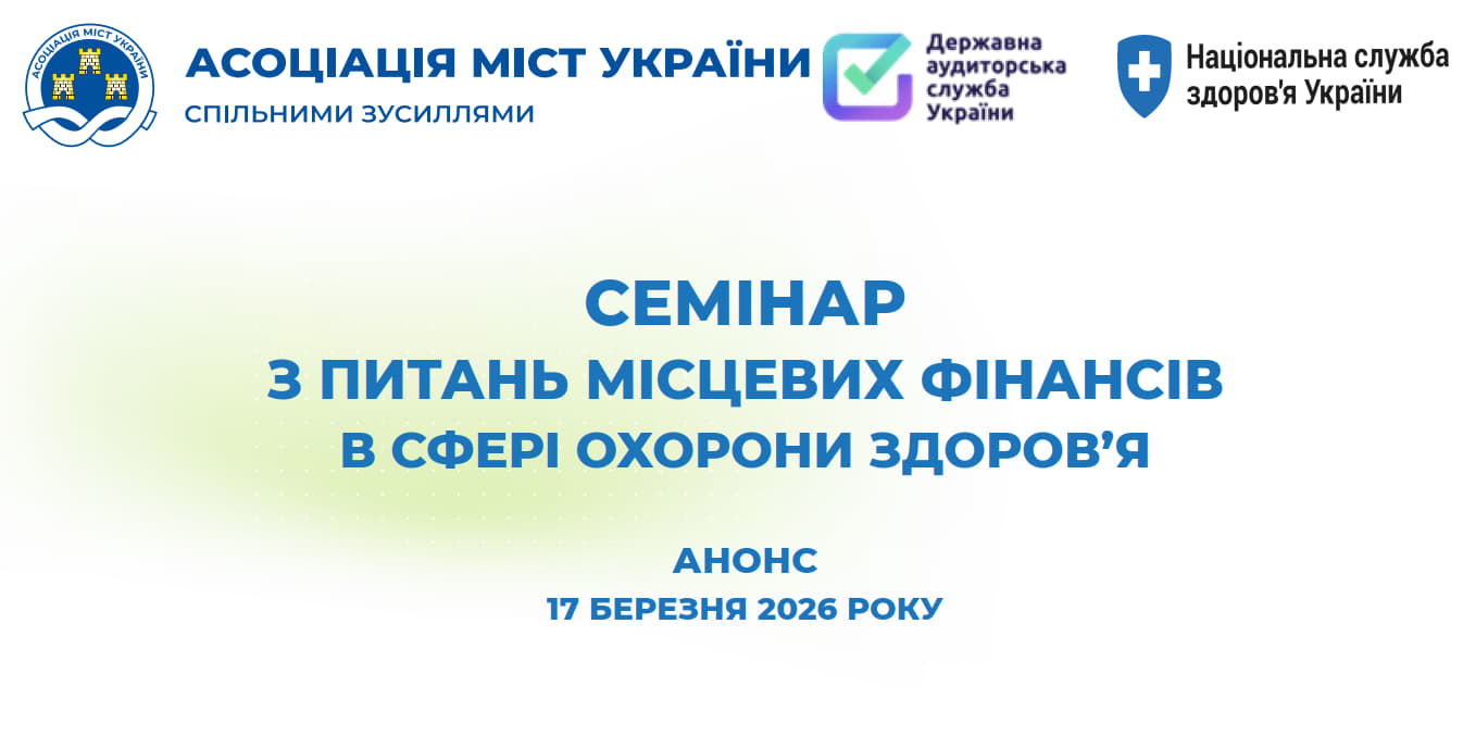 Семінар з питань місцевих фінансів у сфері охорони здоров’я онлайн проведе Асоціація міст України спільно з Державною аудиторською службою України та Національною службою здоров’я України 17 березня 2026 року.