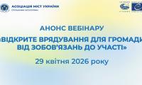 Вебінар «Відкрите врядування для громади: від зобов’язань до участі» проведе Асоціація міст України 29 квітня 2026 року.