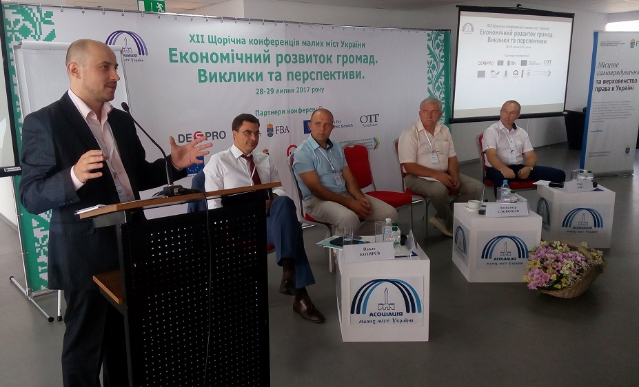 28-29 липня у Києві відбулась ХІІ Щорічна конференція малих міст України, на якій обговорили економічний розвиток громад – виклики та перспективи». Участь у заході взяли голови малих міст, селищ, об’єднаних територіальних громад, представники міжнародних програм технічної допомоги, вітчизняні та закордонні експерти. Асоціацію міст України представляв Виконавчий директор АМУ Олександр Слобожан.